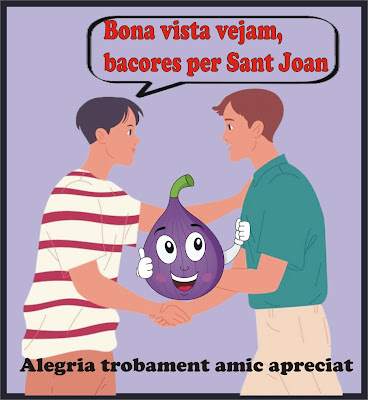 És una expressió humorística d’alegria que s'usa per a emfatitzar quan un troba inesperadament algun conegut a qui s'aprecia, com quan trobem una figa a la mà i que fa temps que no ha vist.